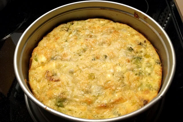 After receiving the cookbook New York City, I’ve made “Electra’s cheese and leek pie” nearly every spring since. For the better part of a decade I used an inexpensive aluminum cake pan until finally investing in a springform pan. Actually, this pie was the first dish I ever made in that fancy pan...which turned out to be defective and leaked all over the oven. Grrr. A high quality springform pan does actually produce a better crust around the outer edge, but the simple cake pan version is still delicious.